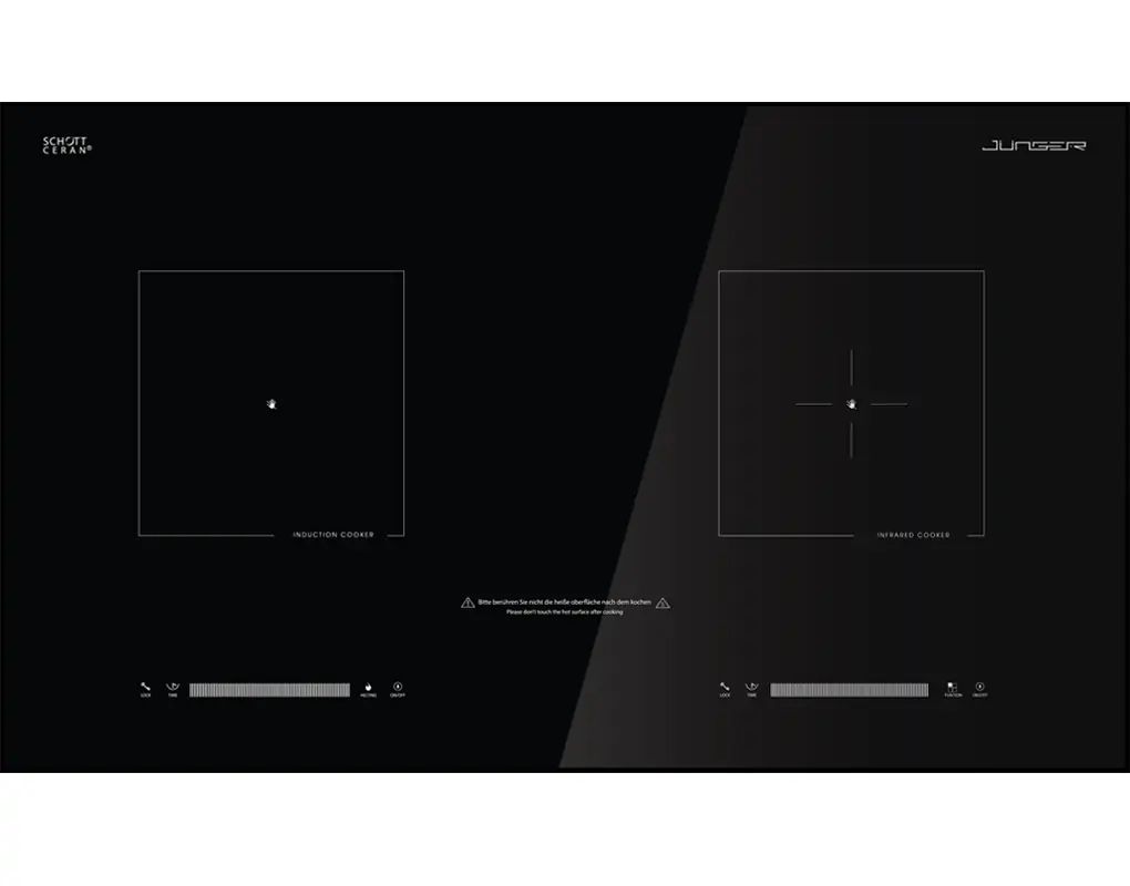 Bếp từ hồng ngoại Junger ID-16 sử dụng bảng điều khiển cảm ứng riêng biệt cho 2 vùng nấu, giúp người dùng thao tác nhanh chóng, điều chỉnh các chức năng nấu một cách dễ dàng.